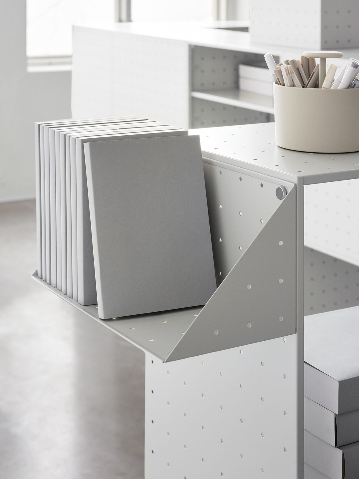 Các khung, kệ, bàn và vách kim loại tổ hợp của LAMY WORKS được thiết kế dựa trên nguyên lý “modular connection”, giúp việc lắp đặt – mở rộng – tái cấu trúc diễn ra nhanh chóng và tiết kiệm.